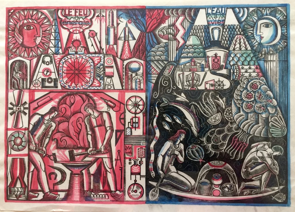 Technique : Gravure sur bois gouachée