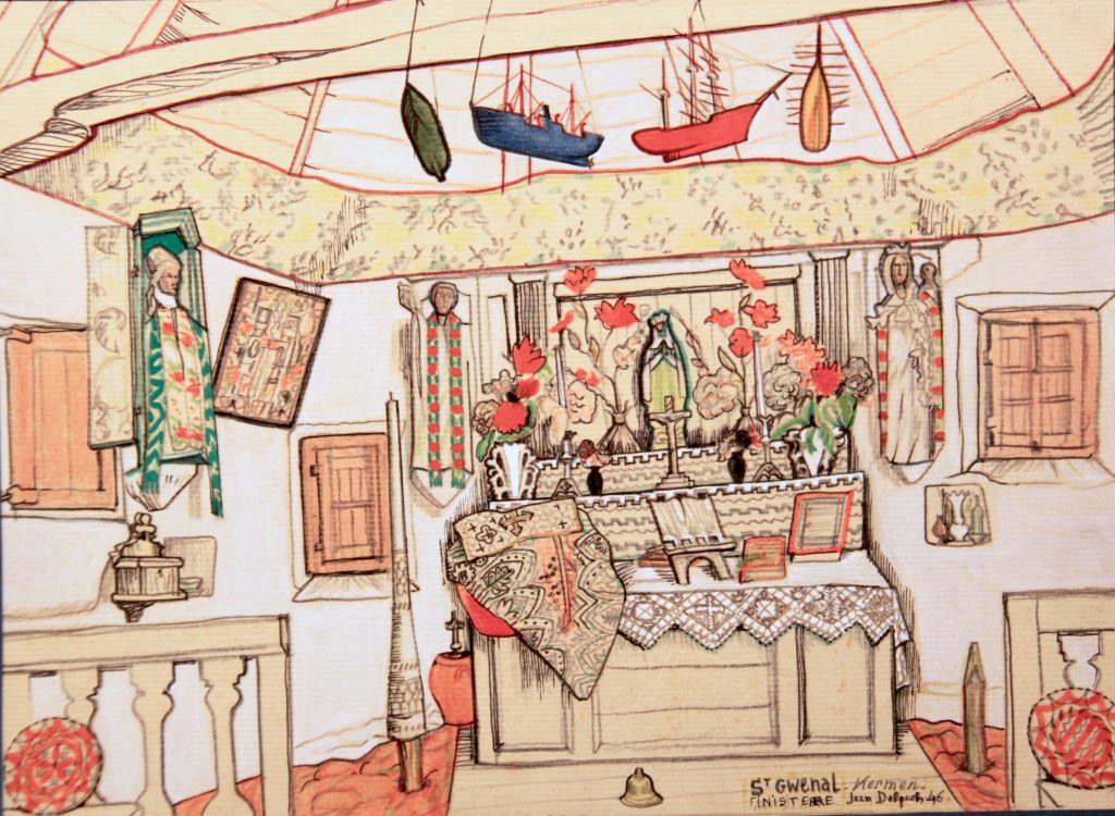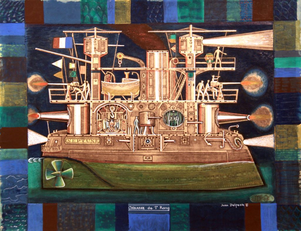 Technique : Gravure – Métal repoussé imprimé gouaché