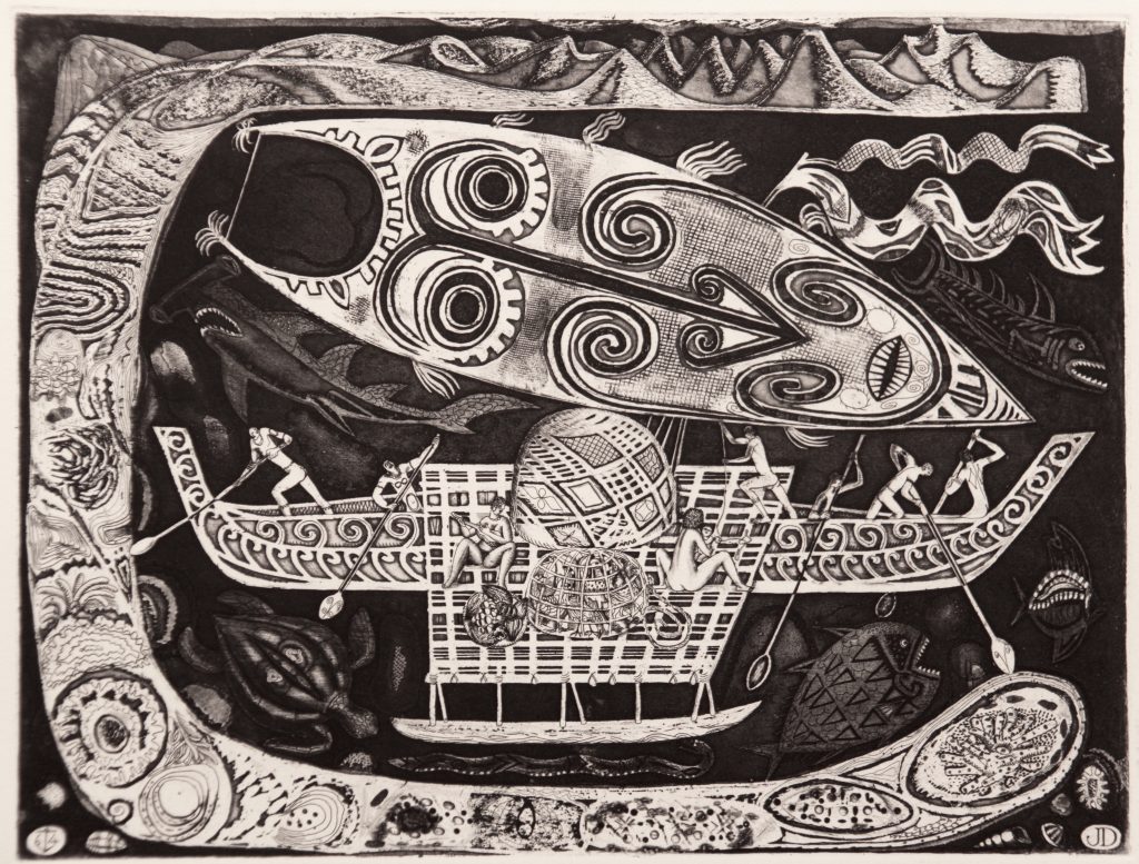 Technique : Gravure – Métal repoussé découpé passé sous presse + gouaché – 1/1