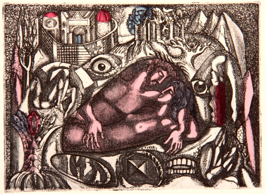 Technique : Gravure – eau forte et aquatinte gouachée – 25 ex