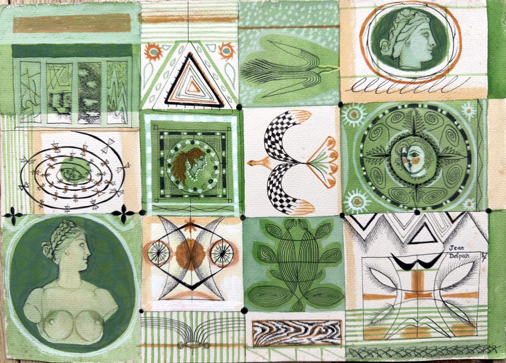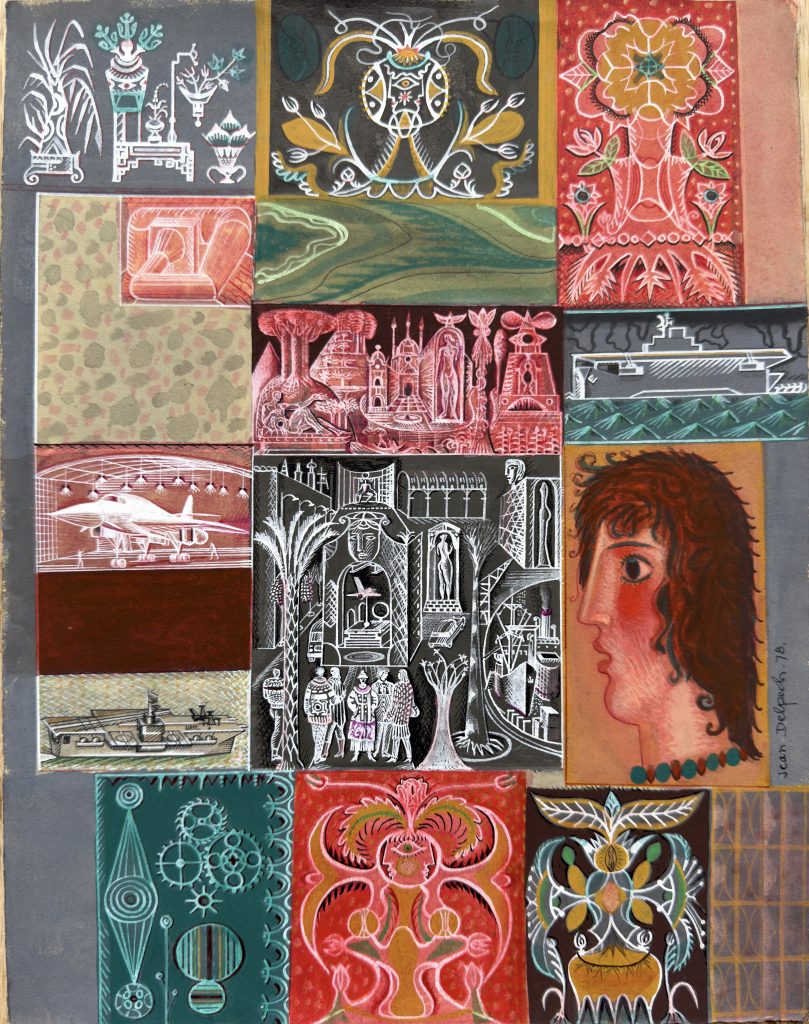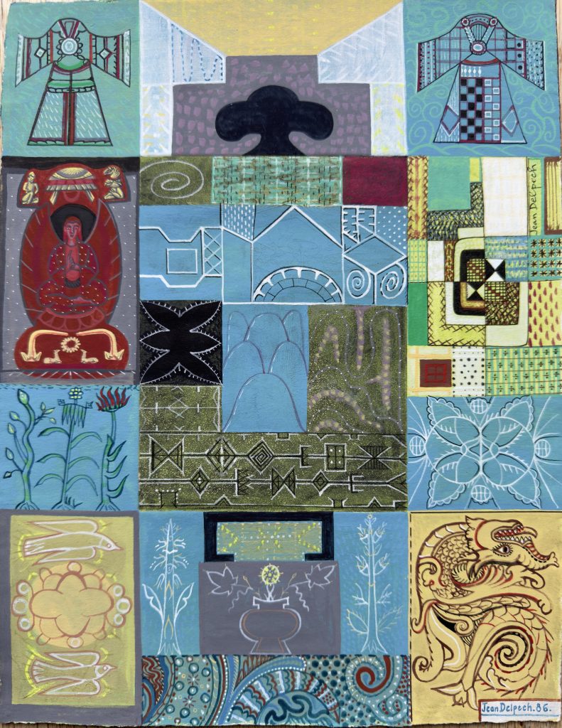Technique : Monotype à base de découpages repris en peinture avec gouache et encre