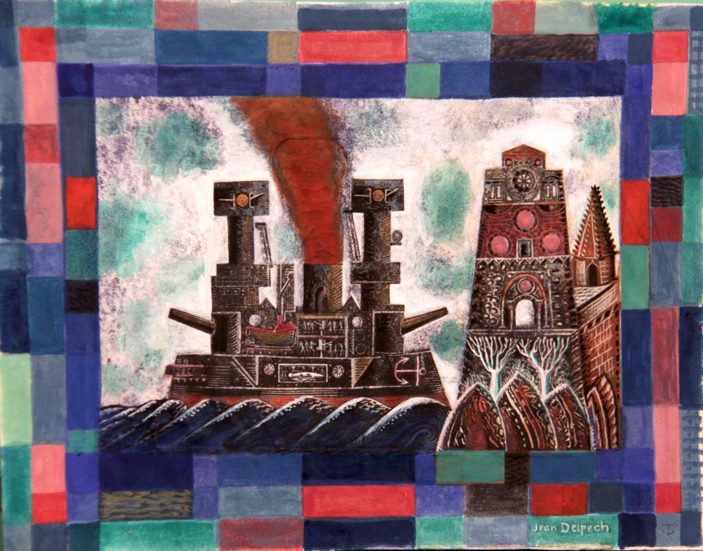 Technique : gravure (papiers découpés?) gouachée – 15 ex