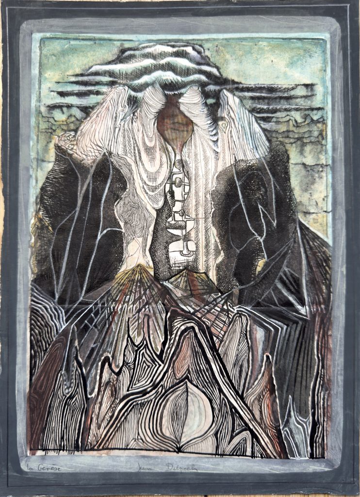 Technique : Gravure reprise et augmentée par peinture à la gouache et encre