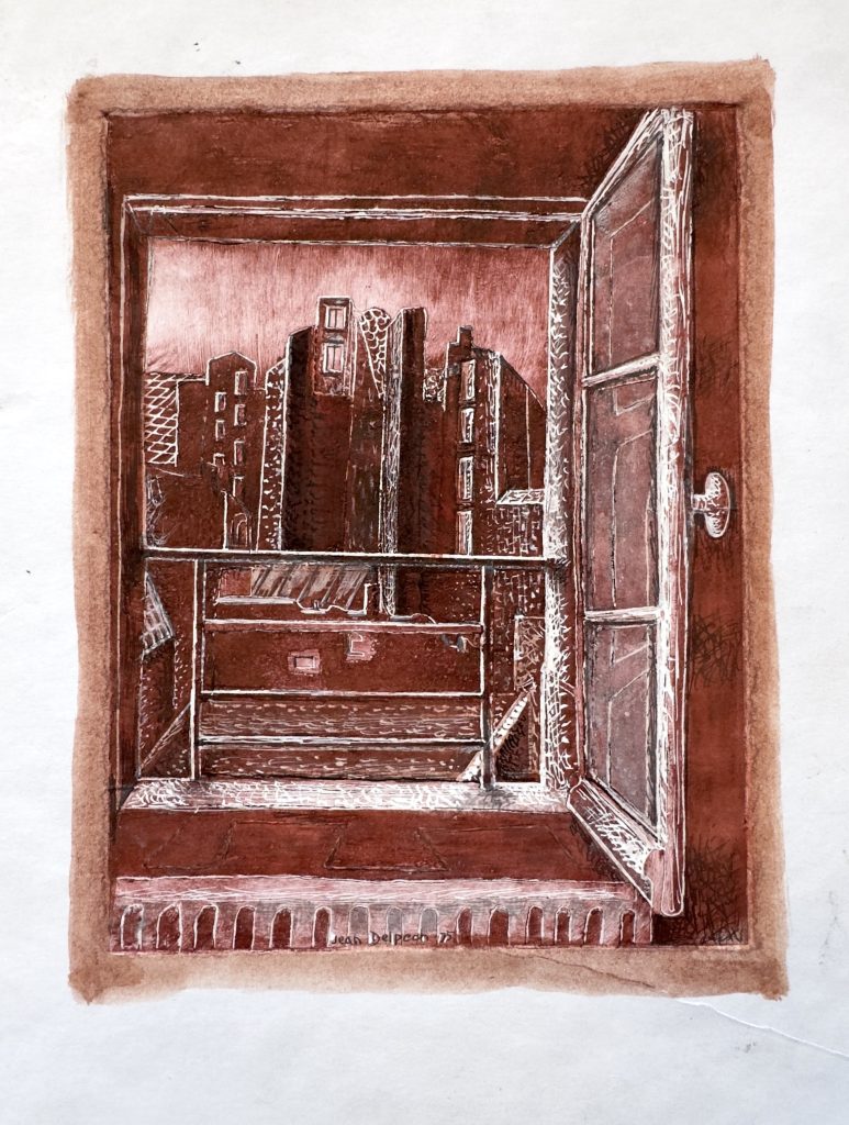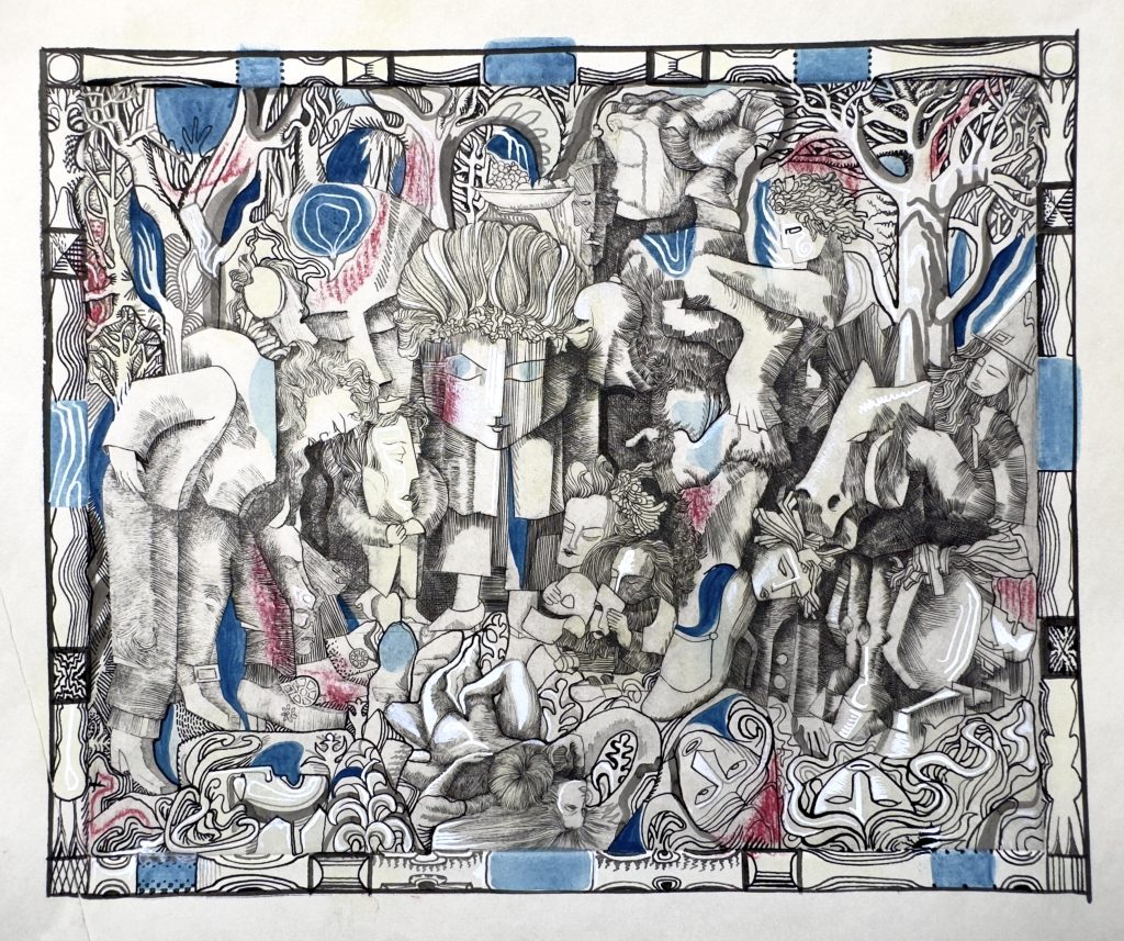Technique : Peinture gouache et encre sur papier – Monotype repris?