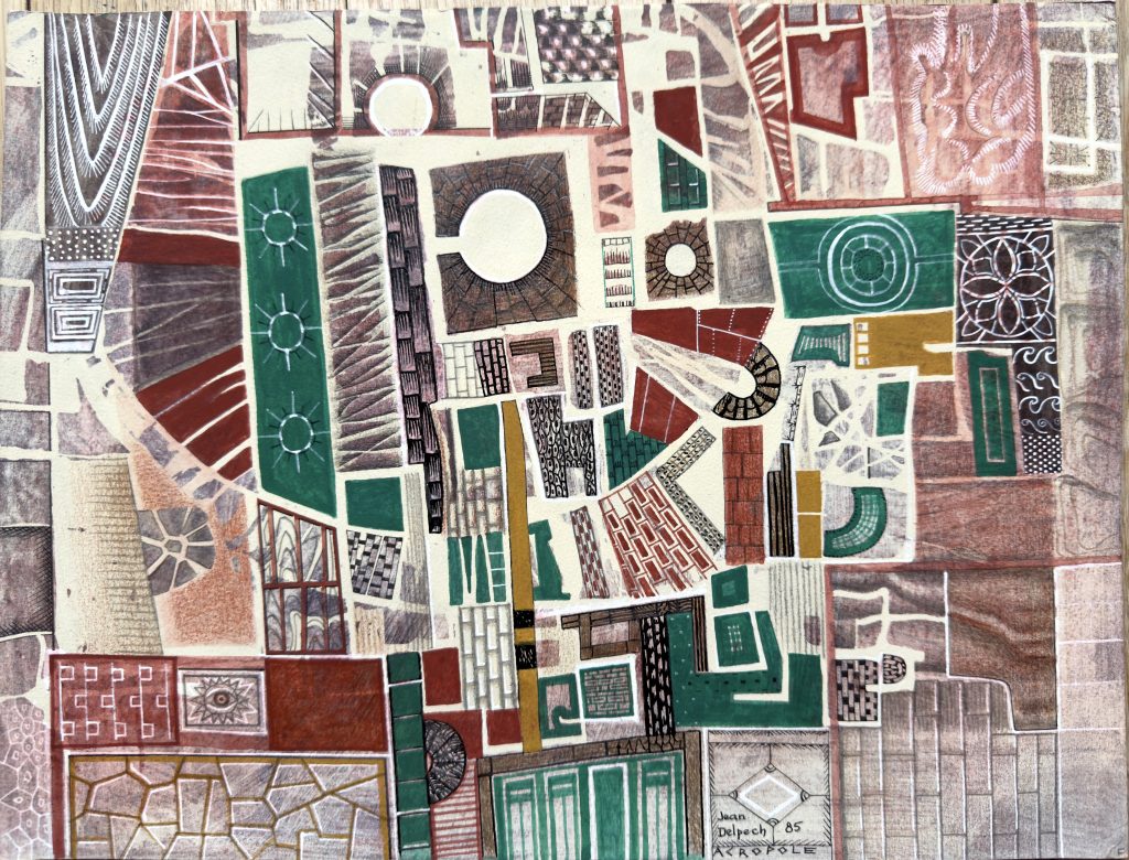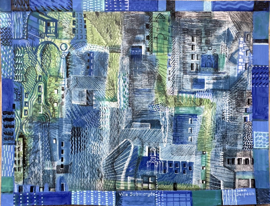 Technique : Gravure d’un élève reprise à la peinture gouache et encre