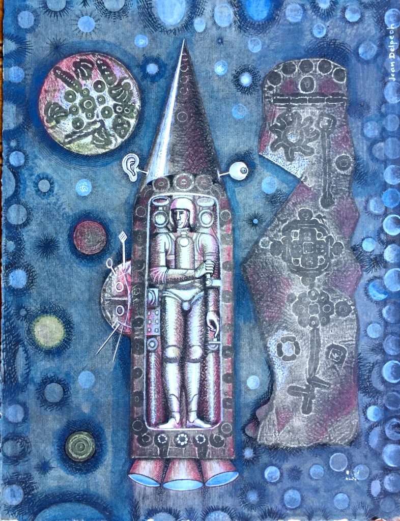 Technique : Gravure – Métal découpé et gravé imprimé repris encre et gouache sur papier