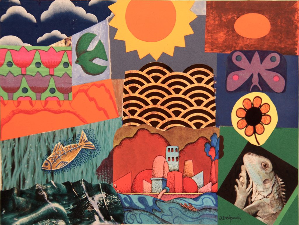 Technique : Monotype avec découpages imprimés repris à la gouache