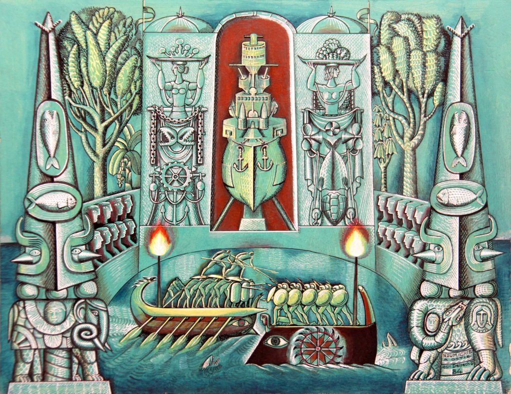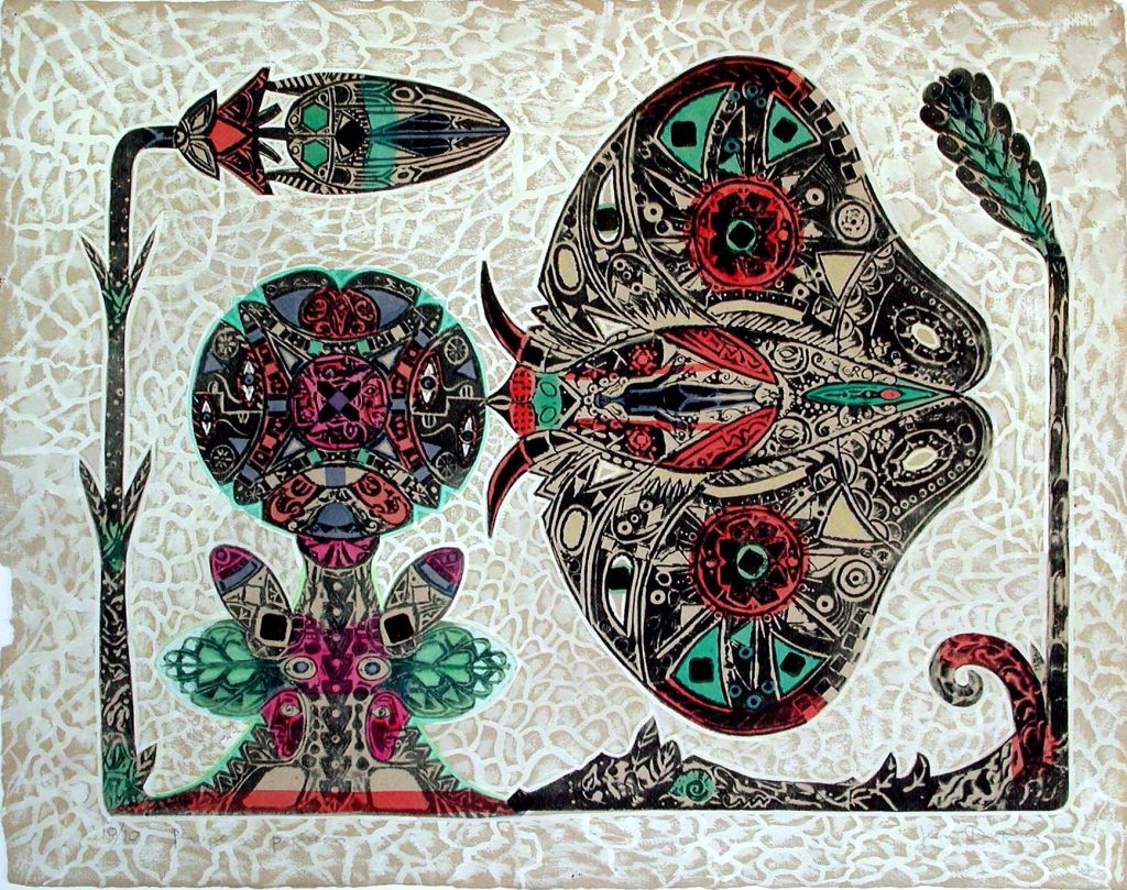 Technique : Gravure sur métal repoussé repris à la gouache – 10 ex