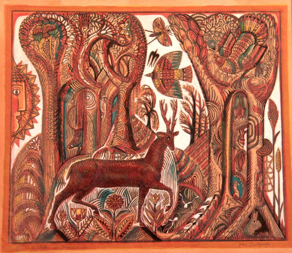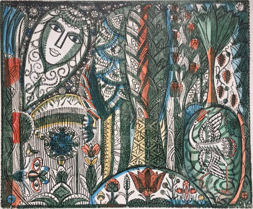 Technique : Gravure sur bois gouachée ou polychrome – EA