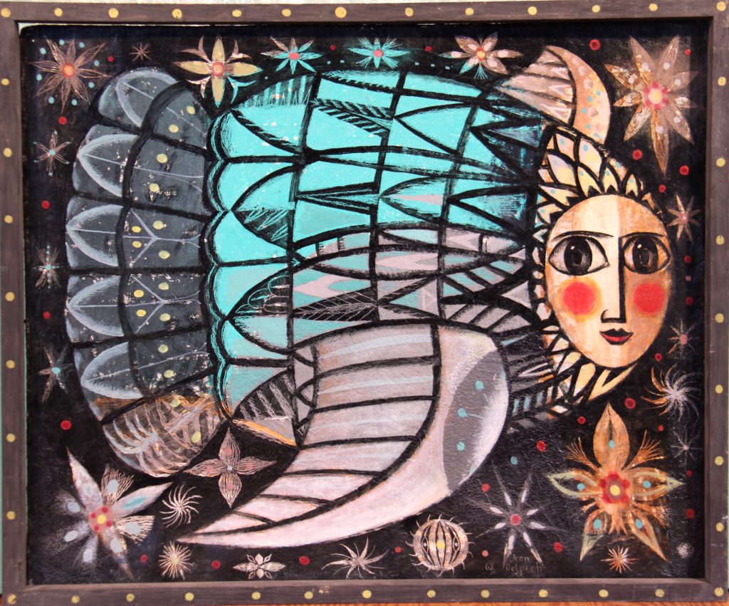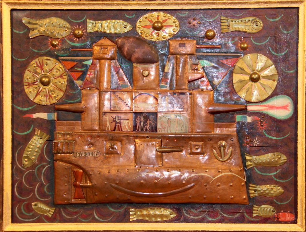 Technique : Métal repoussé et huile sur bois peint
