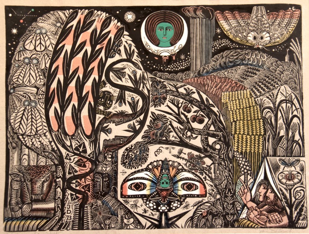 Technique : gravure sur bois – reprise à la gouache – 6/16