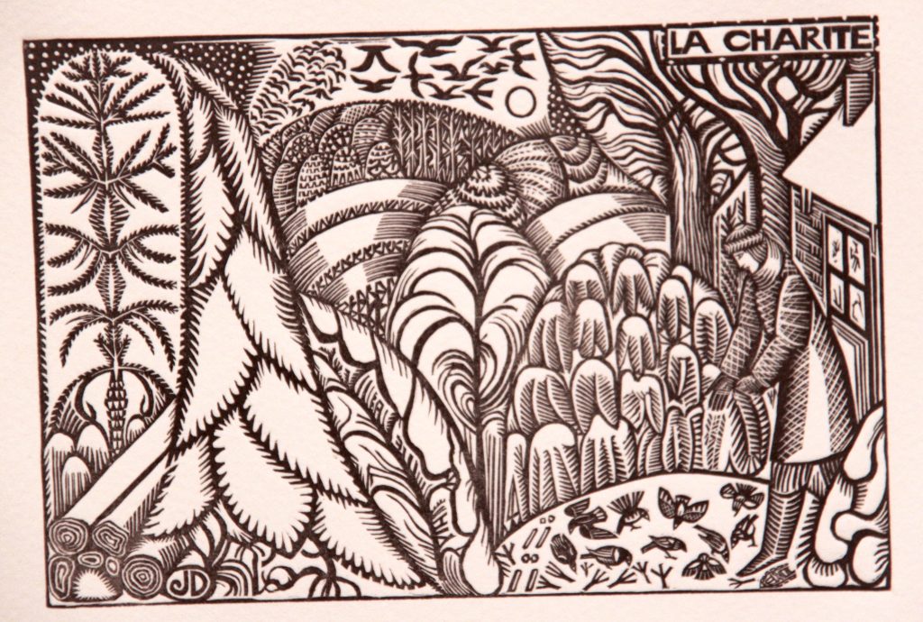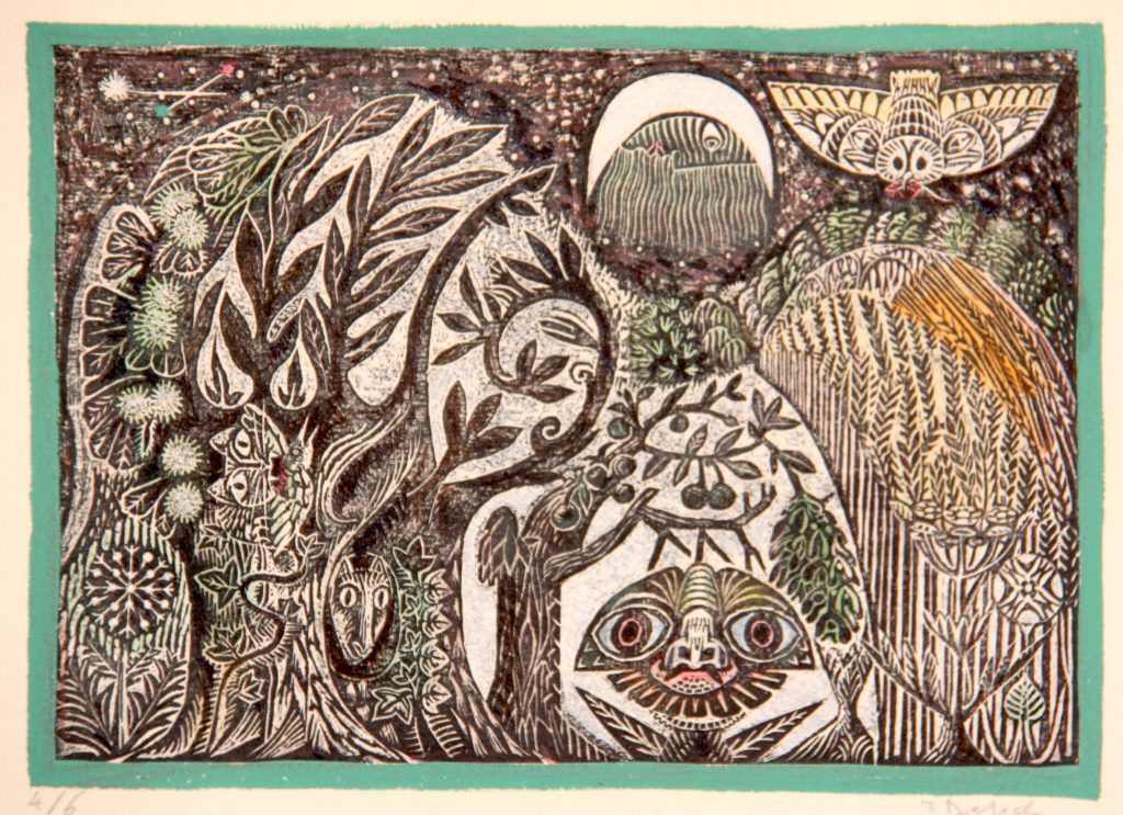 Technique : Gravure – Bois gravé + gouache