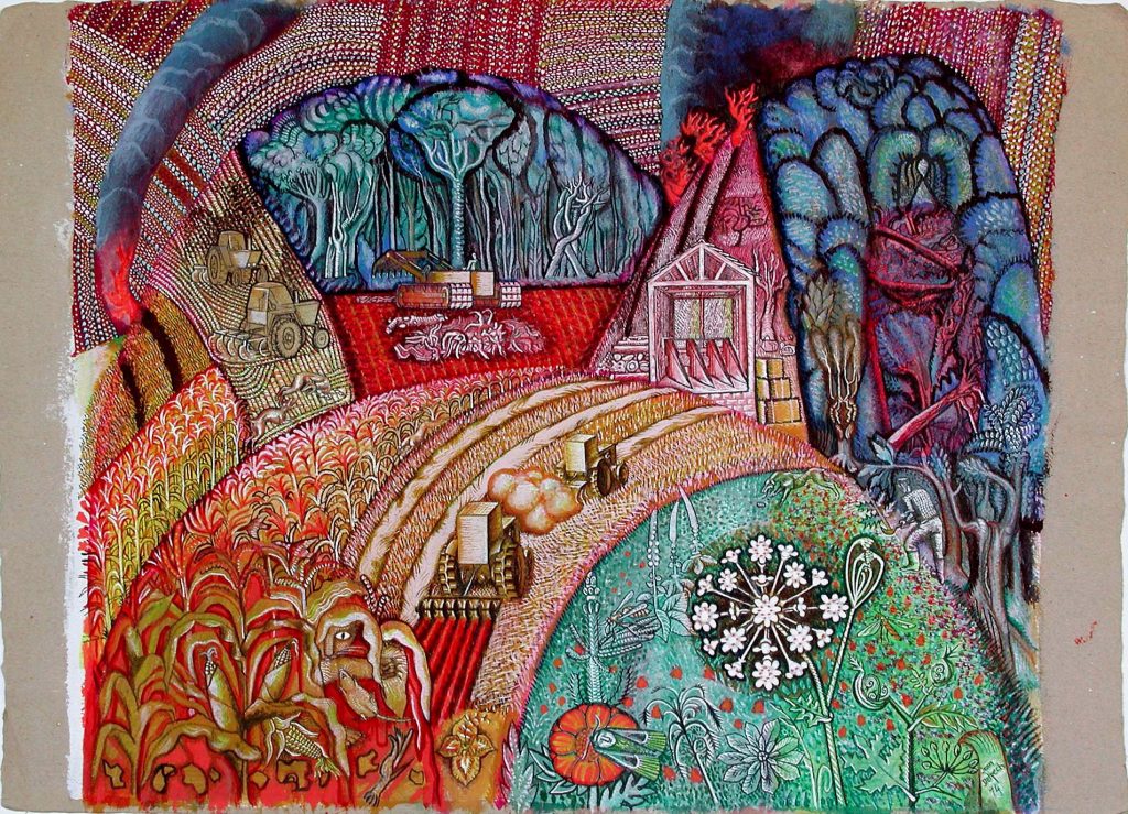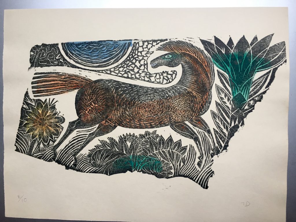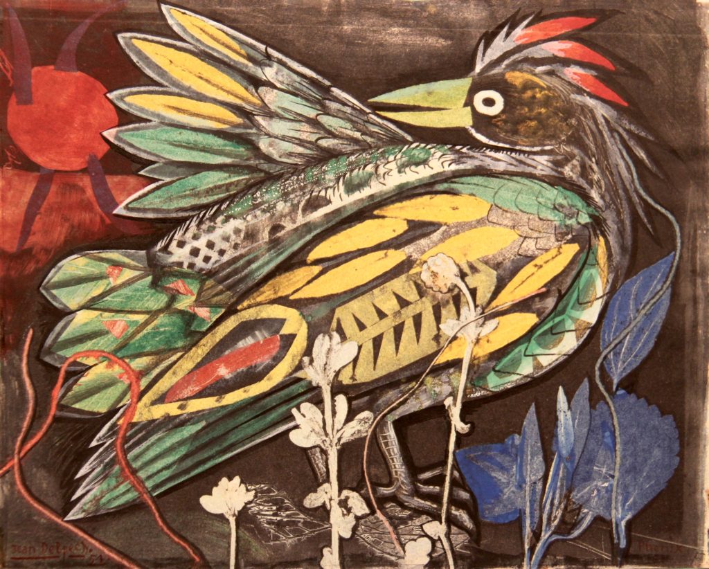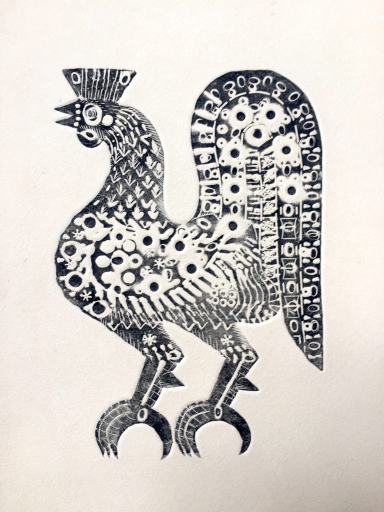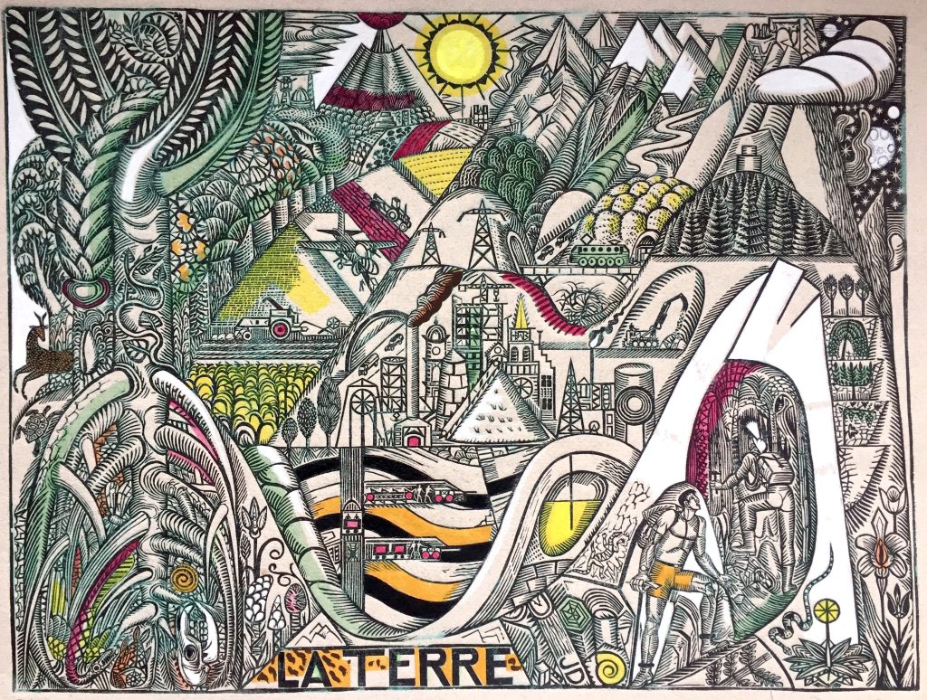 Technique : Gravure sur bois gouachée ou polychrome – EA