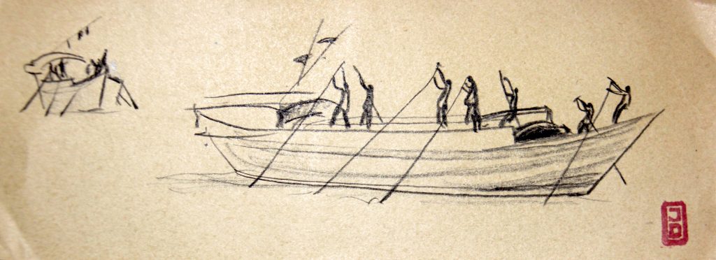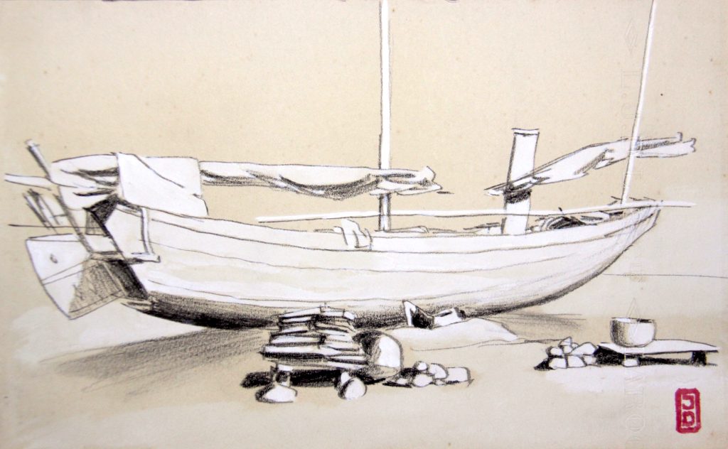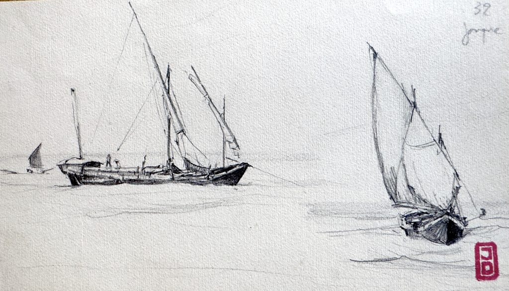 Technique : Fleuve rouge -6/35 – Mine de plomb et crayon couleur