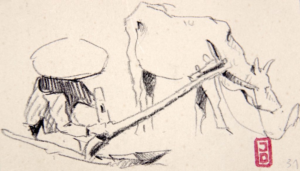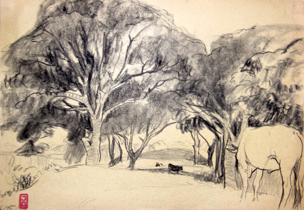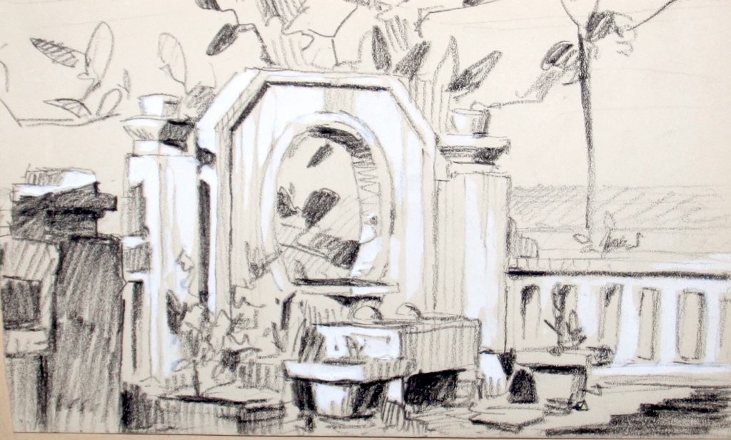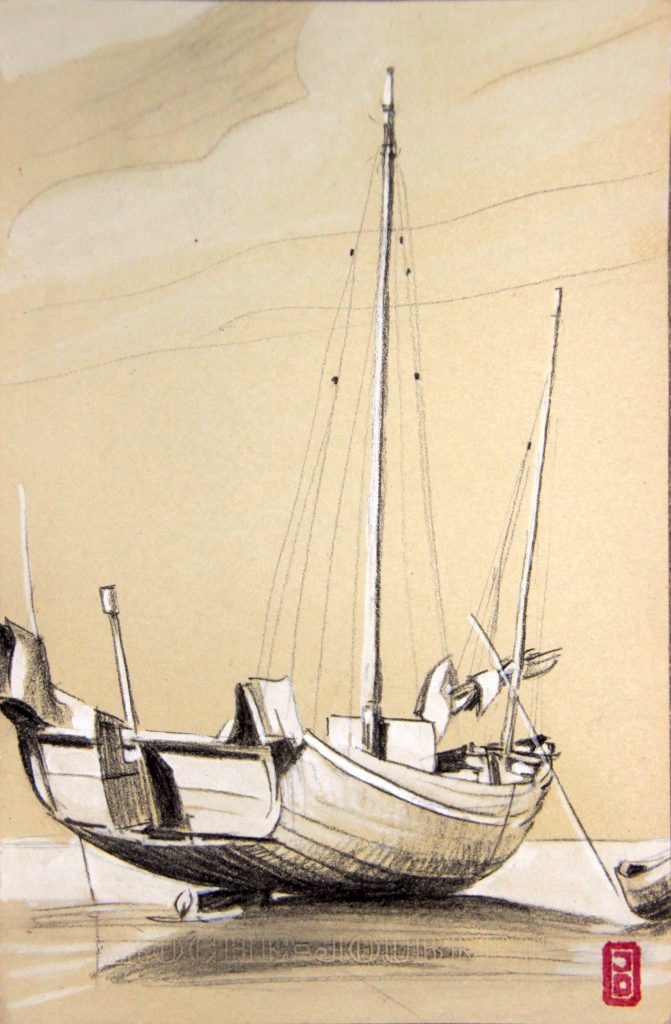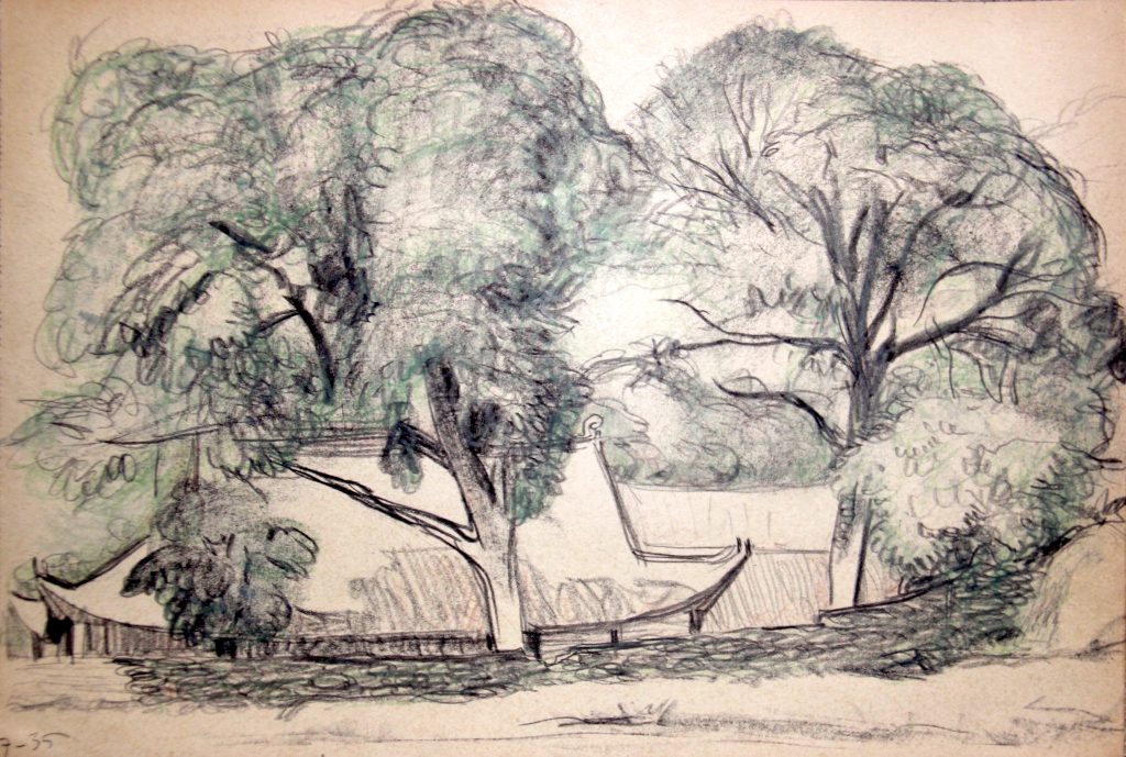 Technique : Crayon et aquarelle sur papier (+ fusain?)