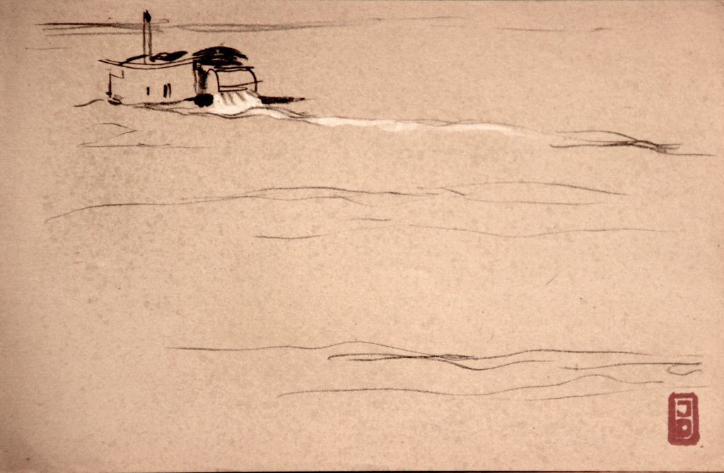 Dessins IndochineMarineTerre Vapeur HaïphongVapeur HaïphongDimensions : 13X20 cmTechnique : Crayon et aquarelleDate : 31/07/1935
