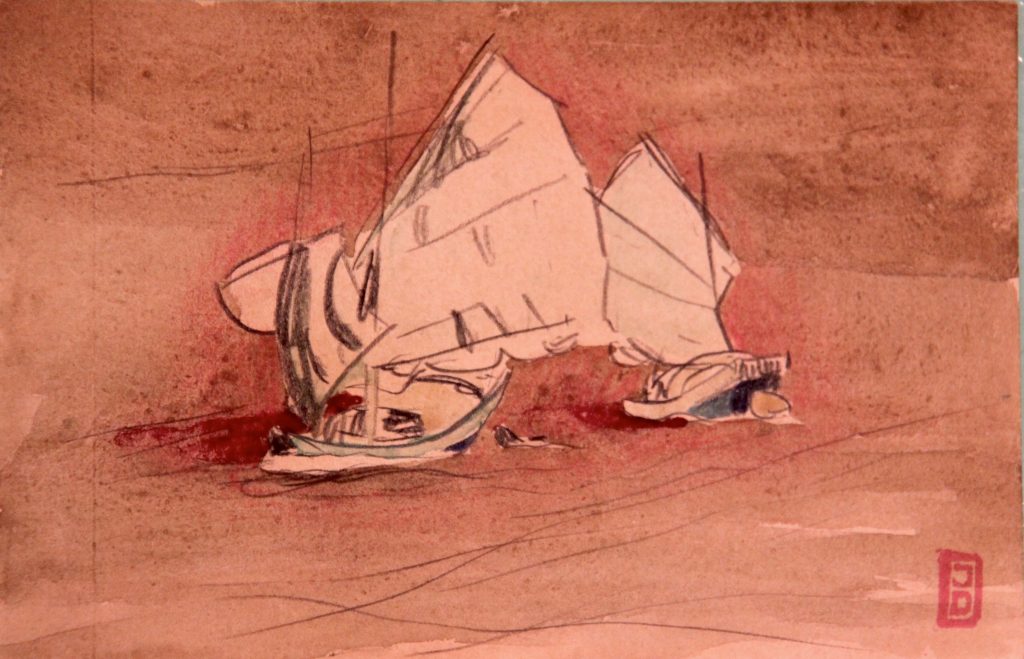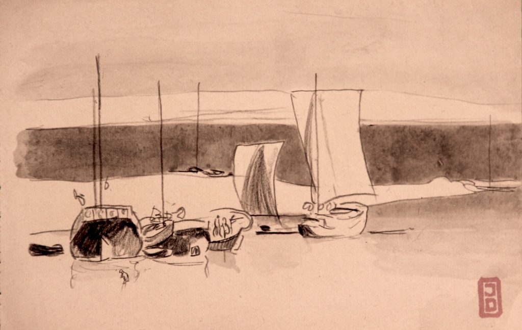 Dessins IndochineMarineTerre Deux voilesDeux voilesDimensions : Crayon et aquarelleTechnique : Crayon et aquarelleDate : 1935 ?