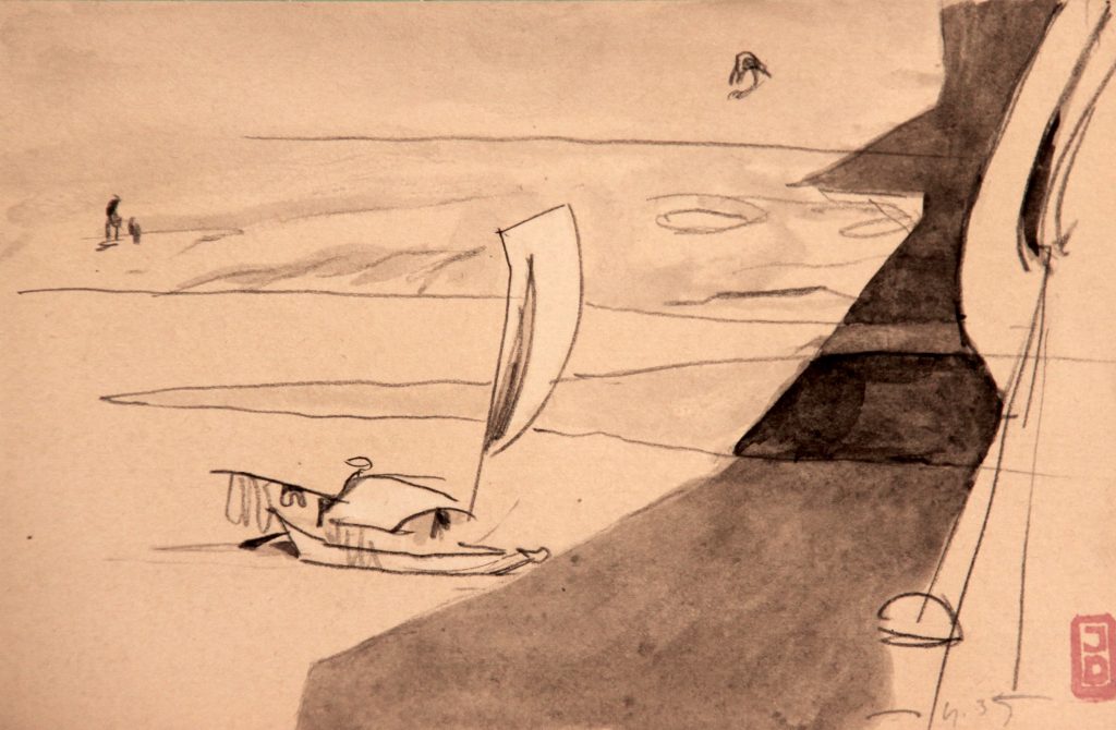 Dessins IndochineMarineTerre Hors bord au secHors bord au secDimensions : 13X20 cmTechnique : Crayon sur papierDate : 1935 ?